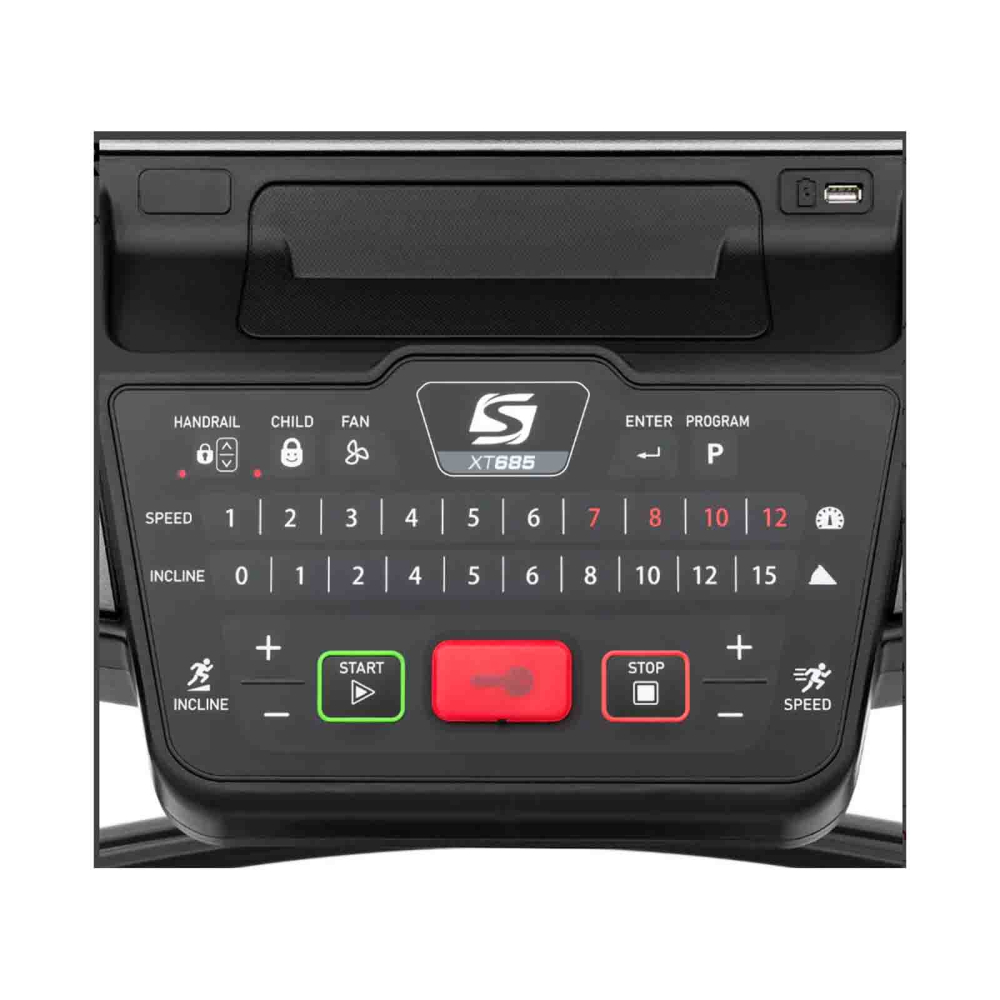 Whether you’re training for a marathon or upgrading your home gym, the Spirit XT685 is built to outlast the rest. Enjoy thousands of miles of uninterrupted use with the 2-ply belt and durable waxed deck. With a variety of preset programs, including a goal-oriented Time, Calories, and Distance Series, you can make the most of each training session. A large, bright 22.8cm multi-colour LCD display keeps track of the metrics you care about most, including a new heart rate graph feature and convenient handlebar pulse sensors that help you stay in your zone. With a top speed of 20 kph and 15 levels of incline, as well as a full range of direct access speed and incline keys on the console, interval training is easier with just the press of a button. Plus, Spirit's new rocker-style speed and incline shifters are conveniently located on the handlebars for fast changes on the go.